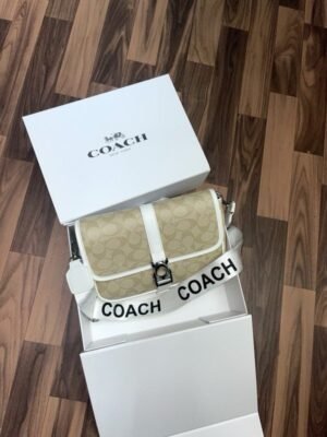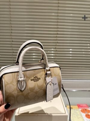 Coach Rowan satchel signature canvas goldkhaki saddle f83607 crossbody bag with dust cover(BH)