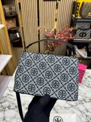 Tory Burch T Monogram Shoulder Bag With Adjustable Strap With OG Box & Dust Bag (Black – 616)(BSB)