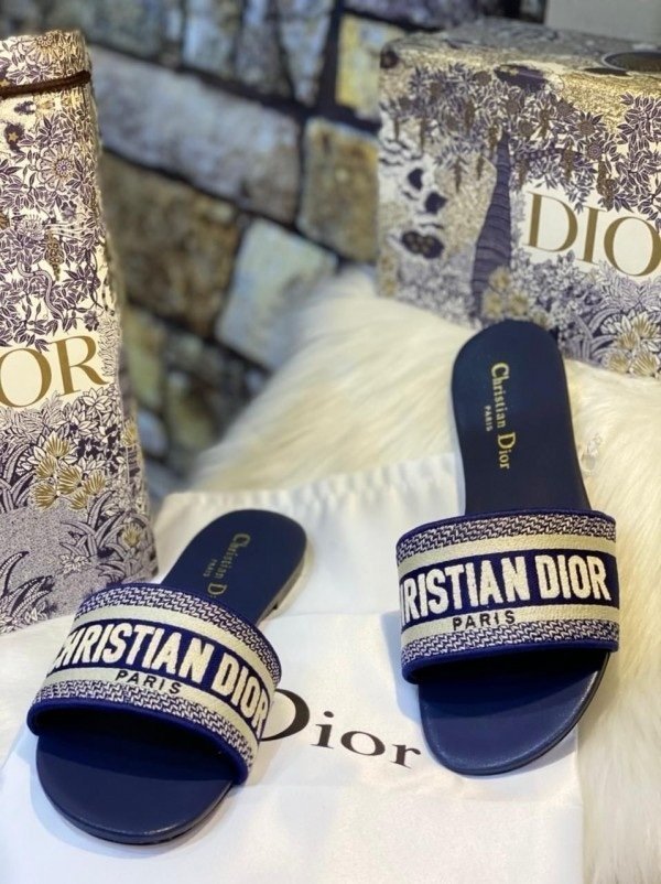 Christian Dior Black Dway Slide With OG Box & Carry Bag (Navy 746)