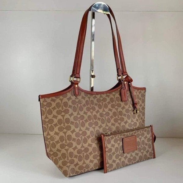 Coach Day Tote With Removable Pouch & Dust Bag (Brown-968)(BSB)