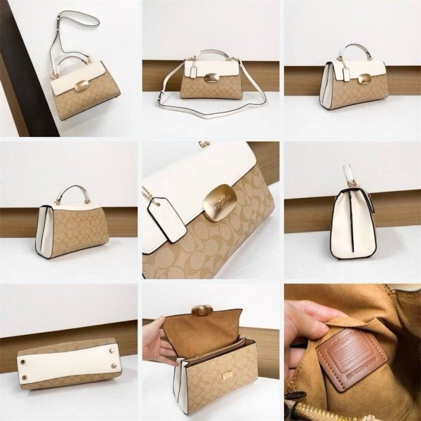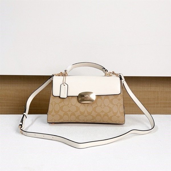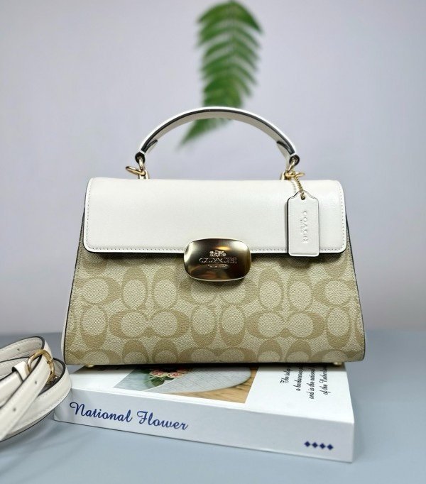 Coach Eliza Top Handle Premium Crossbody Bag With OG Magnetic Gift Box & Dust Bag (White-914)(BSB)