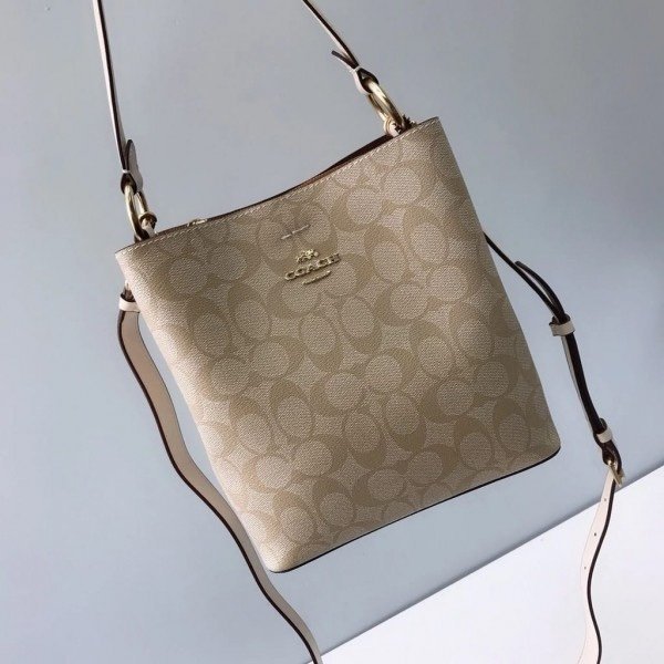 Coach Mollie 22 Apricot Khakhi Black Interior Bucket Bag With Dust Bag 8067 Shallow Apricot Khakhi(LB)