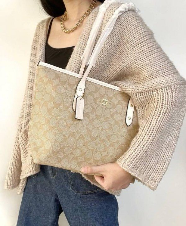 Coach Signature City Tote Bag With OG Box & Dust Bag (Beige_White-931)(BSB)