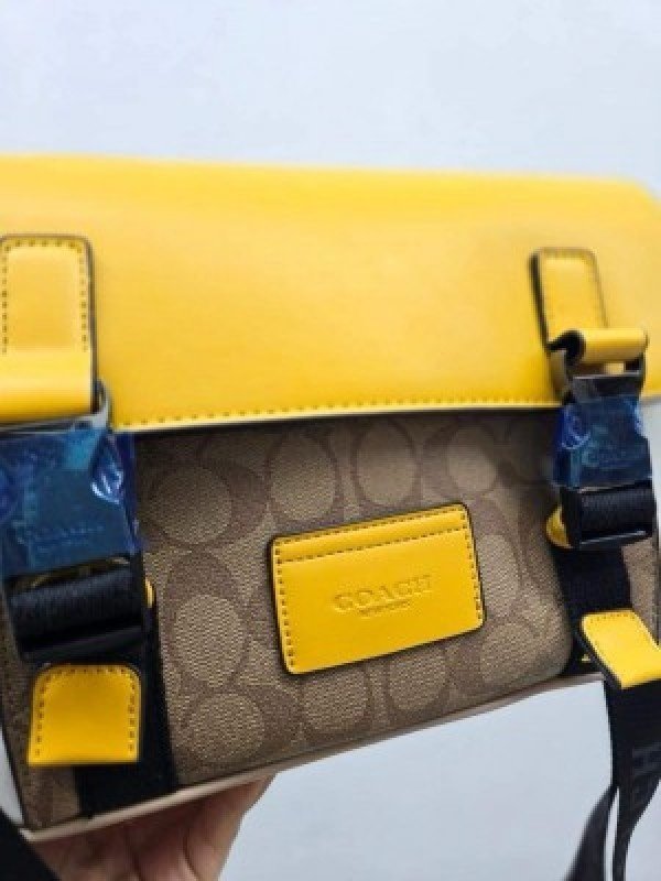 Coach Track Crossbody In Signature Canvas With Dust Bag 1680 White Yellow(LB)