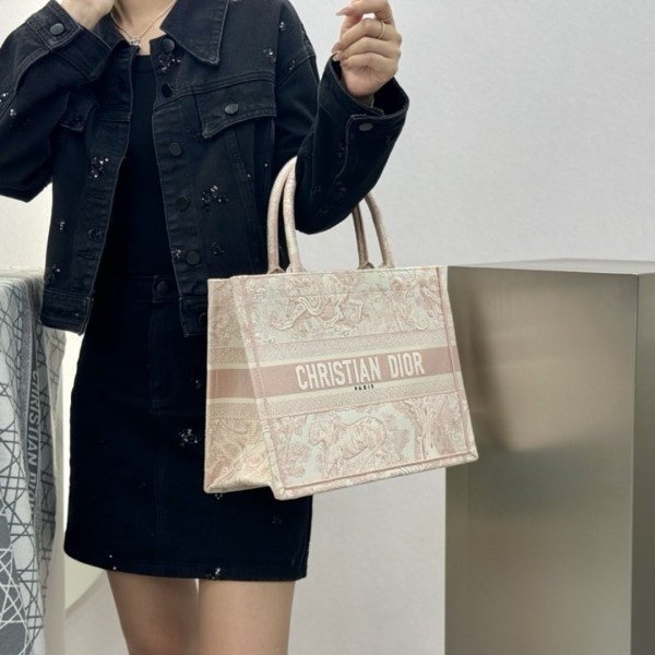 Dior Book Tote Pink Toile De Jouy With OG Box & Dust Bag & Scarf (Pink_Tiger-574)(BSB)