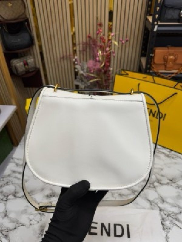 FEND I COMON FF LOGO PLAQUE HANDBAG WITH OG BOX AND DUST BAG INCLUDING CARRY BAG PREMIUM QUALITY (WHITE)(MT)