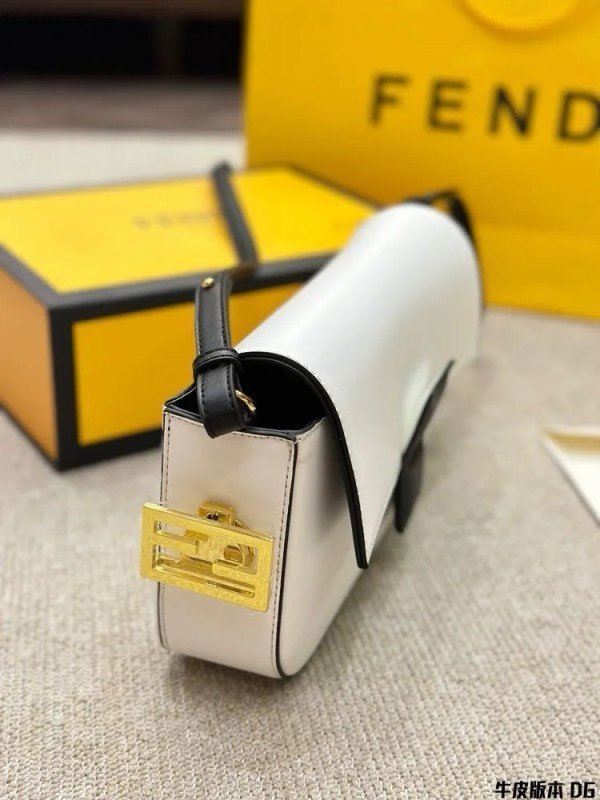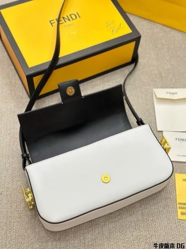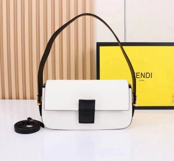 Fendi Baguette Twist Premium Shoulder Crossbody Bag With OG Box & Dust Bag &_2_Belts_(White-928)(BSB)