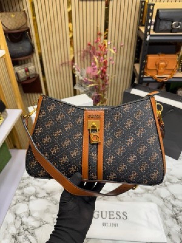 GUESS GINEVRA LOGO ELITE HANDBAG WITH BOX AND DUST BAG (COFFEE)(MT)