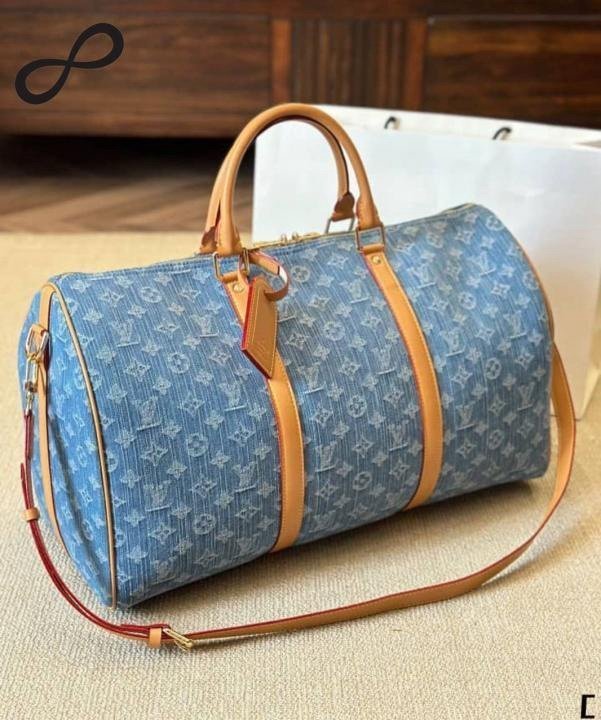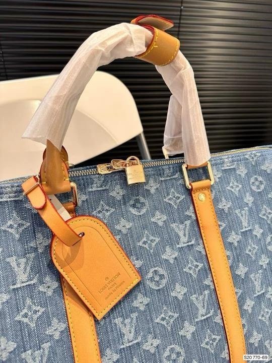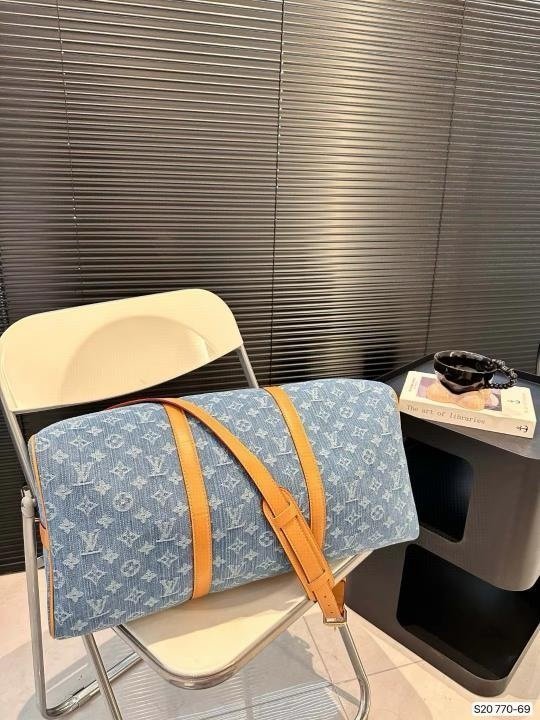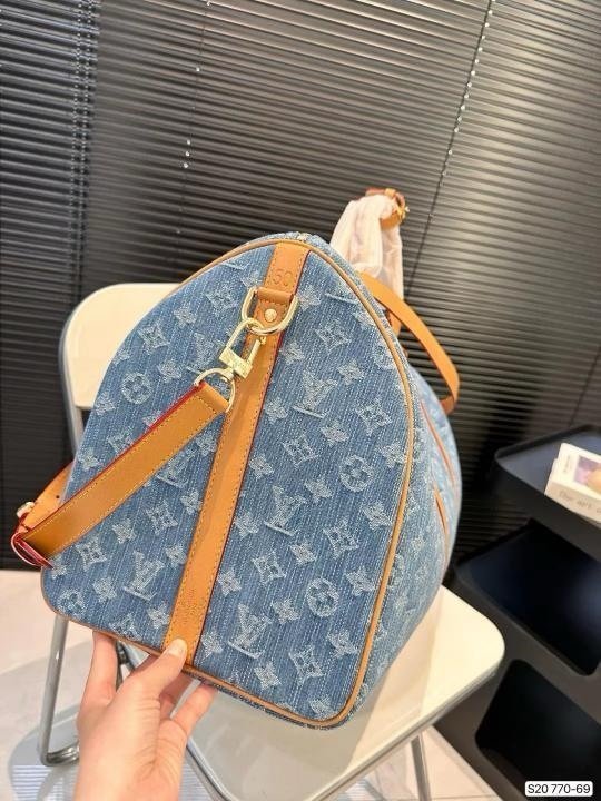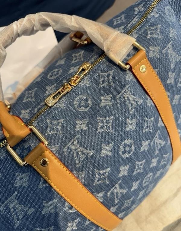 Louis Vuitton LV Keepall Bandoulire NBA Edition Premium Monogram Unisex Duffle Bag With Dust Bag & Accessories (Denim Brown – 684)(BSB)