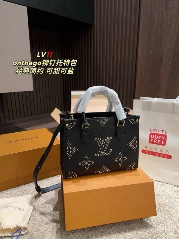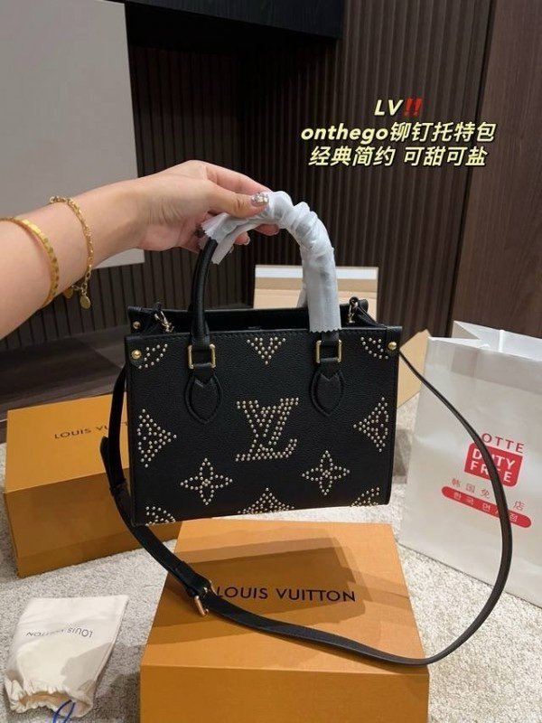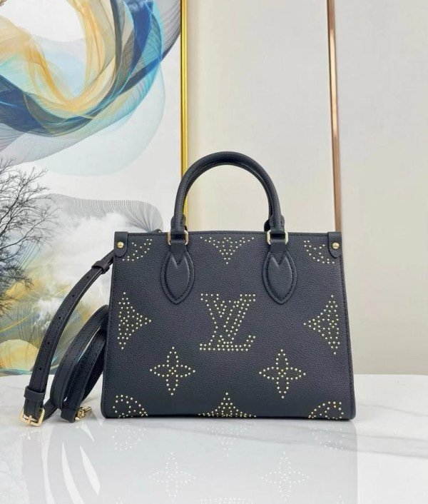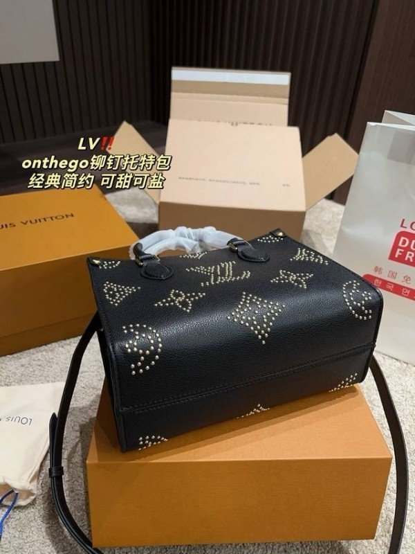 Louis Vuitton LV M46733 On The Go Premium Leather Tote Bag With OG Double Magnetic Box & Dust Bag (Black – 647)(BSB)
