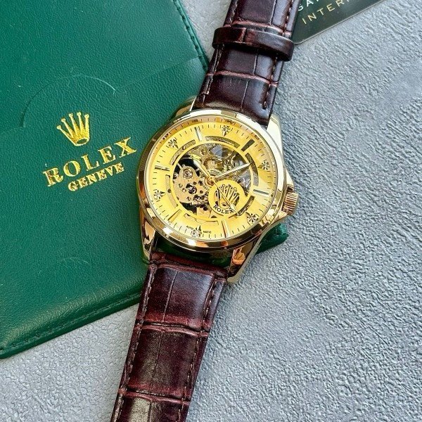 ROLEX AUTOMATIC WATCH BROWN GOLD LEATHER BELT WITH OG BOX