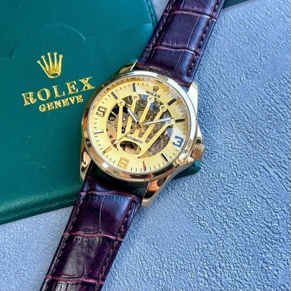 ROLEX AUTOMATIC WATCH BROWN GOLD LEATHER BELT WITH OG BOX